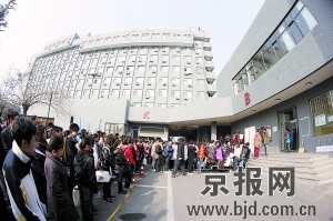 今年北電表演系初試一共8個考場,每個考場三名考官,其中不乏徐靜蕾、黃磊這樣的明星考官。考生們25個人一批進入一個考場,之后分兩組坐定,首先進行自我介紹,并準備一段3分鐘內的朗誦材料,可以是詩歌、散文、小說或電影、戲劇里的一段獨白。隨后,老師給出一個集體小品題目,第一組考生出去準備。第二組再重復進行。