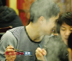 “小沈陽笑轉(zhuǎn)2009全國巡演”在北京首站演出大獲成功后,小沈陽3月8日帶著妻子沈春陽和劉老根大舞臺(tái)的師兄弟們?cè)谝患揖频昀镤袒疱伋詰c功宴。眾人胃口大開要了兩瓶紅酒,一邊喝酒一邊海聊。小沈陽不時(shí)歪頭和身旁的妻子說悄悄話。