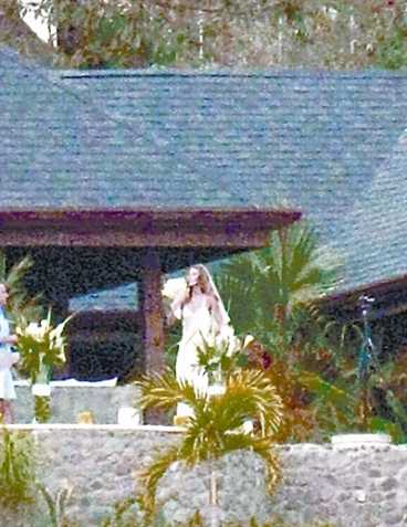 攝影師冒著“生命危險”拍下的婚禮現場圖。依稀可見身穿白紗的吉賽爾·邦辰。據報道,保鏢們在“誓死”保衛主人時,新娘子對婚禮上的“槍戰”一無所知。