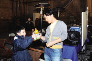 現(xiàn)場有一位“乘機潛入”的小歌迷,慕名來看偶像的演出。陳奕迅是娛樂圈中公認的好父親,在家里對5歲的女兒寵愛有加,在外與別的小孩也能打成一片。在廣告拍攝過程中,陳奕迅突然走到這個小歌迷身邊,拿起手中的飲料和小歌迷碰杯,并與他一起合影,一大一小倆“頑童”的溫馨場面令在場人動容不已。○魯文靜
