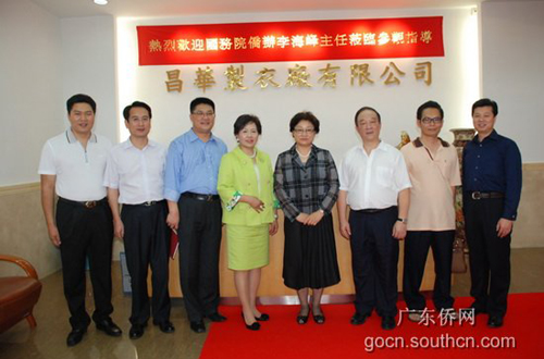 中新網7月28日電 據廣東僑網消息,7月26日,國務院僑辦主任李海峰在廣東省僑辦主任吳銳成的陪同下,專程來到廣州市番禺區潭洲鎮的僑資企業-昌泰國際集團有限公司考察。