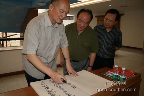 參觀結束時,趙陽為廣東華僑博物館欣然題詞“保護發掘華僑歷史,教育啟示我們的后代”。(葉欣)