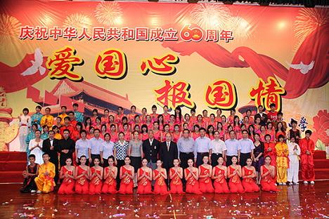中新網9月16日電 在中華人民共和國成立60周年國慶即將到來之際,新會華僑中學董事會于9月12日晚上與師生一起隆重舉行慶;顒,出席活動的董事會成員有董事長黃球,名譽董事長崔世昌,副董事長梁華濟、莫耀強,董事陳伯年、姚健池、莫志偉、譚順康先生等。