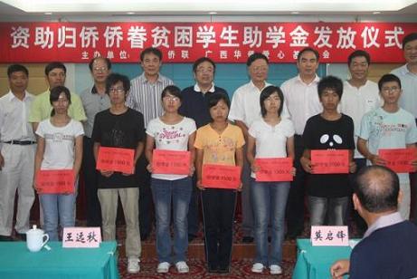 中新網9月21日電 9月15日,廣西僑聯、廣西華僑愛心基金會舉行資助歸僑僑眷貧困學生助學金發放儀式,廣西自治區歸僑僑眷貧困大學生、高中生214名獲得資助,助學金總金額30.1萬元。這是廣西自治區僑聯連續資助全區歸僑僑眷貧困生的第三年,也是廣西華僑愛心基金會資助全廣西自治區歸僑僑眷貧困生的第一年。