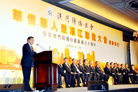 中新網11月25日電 據中國僑聯(lián)網站消息,11月23日至24日,由澳門歸僑總會主辦的“2009華僑華人聚濠江聯(lián)誼大會”在澳門舉行。中國僑聯(lián)主席林軍,國務院僑辦副主任許又聲以及來自世界56個國家和地區(qū)的華僑華人代表以及內地僑界嘉賓共1000多人應邀出席。澳門特別行政區(qū)行政長官何厚鏵到會講話,中央人民政府駐澳門聯(lián)絡辦副主任徐澤、外交部駐澳門特派員盧樹民等到會祝賀。