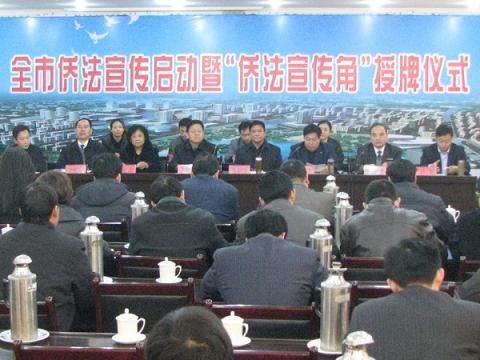 會議對全市僑法宣傳工作進(jìn)行了部署,并向市中區(qū)榮華里社區(qū)和光明園社區(qū)進(jìn)行了“全國僑務(wù)系統(tǒng)五五普法僑法宣傳角”授牌。