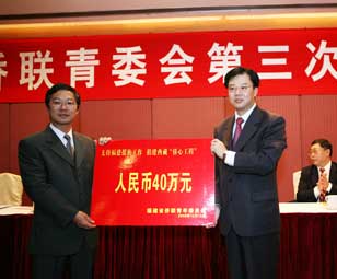 會上,還舉行了福建省僑聯青委會向省對口辦捐贈40萬元援藏“僑心工程”善款的現場捐贈儀式。