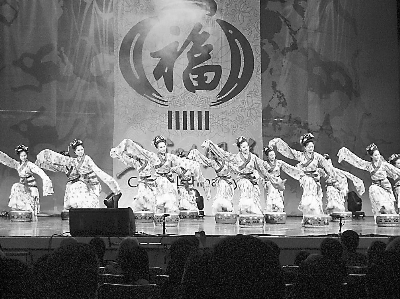 隨著《春節(jié)序曲》的播放,20個身穿紅色水褲的姑娘提著燈籠魚貫而入,載歌載舞。臨近結束,身著節(jié)日服裝,手拿鞭炮、雙魚的本地兒童擁上舞臺,又蹦又跳,把中國人在傳統(tǒng)節(jié)日里熱鬧歡騰、喜氣洋洋的場面表現(xiàn)得淋漓盡致。