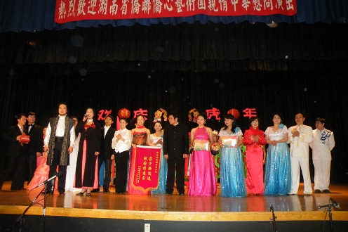 在近3個小時的演出中,湖南省僑聯僑心藝術團先后表演了23個節(jié)目,包括合唱、獨唱、服飾表演、小品、舞蹈等。其中《洞庭魚米鄉(xiāng)》曾獲中國音樂金鐘獎首屆合唱比賽金獎第一名、獲2008年第5屆世界合唱比賽銀獎。