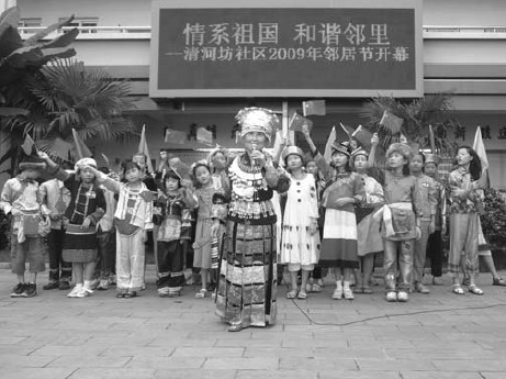 這次澳門回歸10周年,潘曼霞夫婦倆再次受到了邀請(qǐng),潘曼霞由大女兒陪同,參加澳門十周年慶典。這次,老人再次帶去了嶄新的28套民族服裝。當(dāng)澳門勞工子弟學(xué)校的學(xué)生們?cè)俅未┥吓寺夹聨淼?8套民族服裝,為老人載歌載舞,歡迎老人時(shí),老人也很開心。