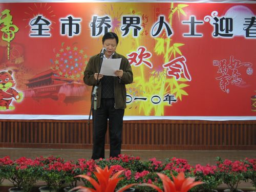聯歡會上,歸僑僑眷和僑務干部們自編自演,用歌曲、舞蹈等多種形式表達新春來臨的喜悅心情。