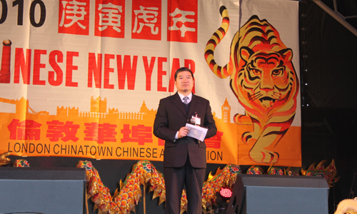 演出前,任啟亮代表中國國務院僑辦和“文化中國•四海同春”藝術團全體成員,向英國華僑華人以及在場的英國朋友致以節日的問候和最美好的祝愿。他說,為豐富僑胞文化生活,促進中英文化交流,繼去年組派“文化中國•四海同春”藝術團來英表演后,今年又為大家帶來了一場民族特色濃郁的歌舞表演,相信這將為英國僑社的春節慶;顒釉鎏砹聋惿,加深英國民眾對中華文化的了解,增進中英兩國人民的友誼。