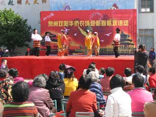 中新網2月23日電 據泉州市洛江區僑聯消息,20日(正月初七)上午,福建省泉州雙陽華僑農場、雙陽街道僑聯聯合舉辦雙陽華僑農場2010年迎新春聯歡活動,近千名歸僑、僑眷歡聚一堂載歌載舞,以自編、自導、自演的具有濃厚東南亞風情的文藝節目,歡慶新春佳節。