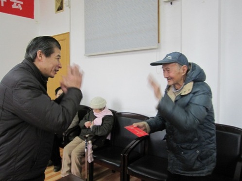 李寧緊緊握住歸僑僑眷的手,向他們表示節日的問候,并祝他們身體健康,生活幸福。