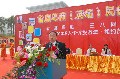 林琳在啟動儀式上作了講話。他首先代表廣東省僑辦向茂名全市人民表示熱烈的祝賀,并預祝首屆粵西(茂名)民俗風情旅游節取得圓滿成功!他指出,茂名市在首屆粵西民俗風情旅游節中同時舉辦“廣東2010年華人華僑旅游年·相約茂名”活動,既體現了這次旅游節的僑鄉特色,更體現了茂名市各級黨委政府對僑務工作的重視,對為僑服務和以僑為橋搞活經濟、搞活旅游所作出的巨大努力,認為此舉必將為溝通海內外茂名鄉親的聯系、發掘茂名旅游資源、進一步拓展和繁榮茂名的旅游市場發揮出積極的作用。