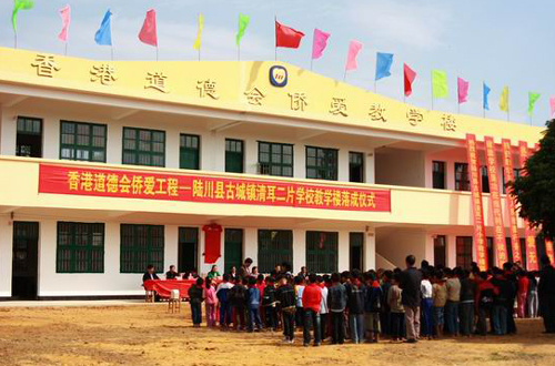 通過廣西自治區(qū)僑辦牽線搭橋,捐助支持廣西各項公益事業(yè)的僑社和慈善團體中,香港道德會較為突出。香港道德會是香港有名的慈善機構,2009年先后在廣西欽州市欽南區(qū)新營村、賀州市八步區(qū)東南村、岑溪市地麻村、陸川縣清耳村等地,捐建4所小學,捐贈總額達172萬元人民幣。這些受捐建的小學有個響亮的名字:“香港道德會僑愛教學樓”。