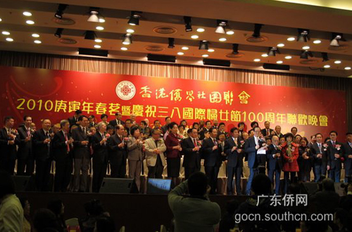 中新網(wǎng)2月26日電 據(jù)廣東僑網(wǎng)消息,2月22日晚,香港龍堡國(guó)際賓館冠蓋云集,群賢匯聚。香港僑界社團(tuán)聯(lián)會(huì)在此隆重舉行2010庚寅年春茗暨慶祝三八國(guó)際婦女節(jié)100周年聯(lián)歡晚會(huì)。廣東省僑辦副主任黎靜出席此次活動(dòng),并向該會(huì)贈(zèng)送禮品。
