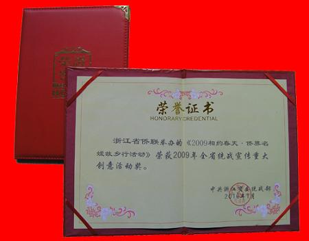 中新網3月1日電 據浙江僑聯網消息,辛勤耕耘終結碩果。年初捷報傳來:浙江省僑聯舉辦的“2009相約春天•僑界名媛故鄉行活動”榮獲2009年全省統戰宣傳重大創意活動獎。