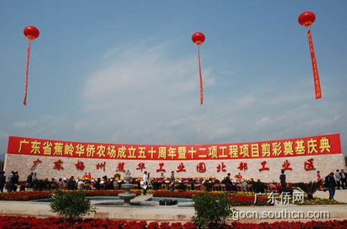 據了解,蕉嶺華僑農場創建于1960年,現有土地面積26.04平方公里,總人口8000多人,其中歸僑僑眷2200多人。2006年,經廣東省政府批準成立廣東梅州蕉華工業園區(省級開發區),享受縣一級行政、經濟管理職能。近年來,蕉華以“小僑場要有大作為,小地方要有大亮點”為工作目標,注重理順管理體制,注重解決歷史遺留問題,注重改善重點民生,注重招商引資和園區建設,注重維護社會穩定,不斷推進華僑農場的改革發展,經濟社會取得了新成效。2009年,實現工業產值4.35億元,比2003年增長178.84%,年均增長29.81%。2003年以來,共引進項目23個,總投資近8億元。此次剪彩、奠基項目共12個,總投資近3億元。目前,蕉華產業集群和企業集群初具雛形,是梅州市實施“推動綠色崛起,實現科學發展”的重要工業載體之一,已成為梅州市培育新的經濟增長極和招商引資新熱土。(吳功獎)