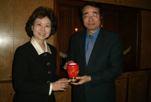 中新網(wǎng)3月2日電 2月28日中午,率“文化中國 四海同春”藝術(shù)團(tuán)在美東地區(qū)訪演的國務(wù)院僑辦副主任許又聲在駐紐約總領(lǐng)事彭克玉及夫人陪同下,應(yīng)邀出席了前美國勞工部長趙小蘭及其父親趙錫成博士舉行的午宴。
