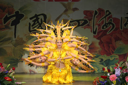 著名歌唱家劉斌、呂微為觀眾們演唱了《咱當兵的人》、《茶花女》等家喻戶曉的經典歌曲。維吾爾族舞蹈《頂碗舞》、哈薩克族舞蹈《可愛的一朵玫瑰花》展現了中國西域少數民族的優美舞姿,“千手觀音”舞蹈為觀眾們送來了虔誠的祝福,整場演出氣勢磅礴,觀眾如癡如醉,臺上臺下互動不斷,高潮迭起。