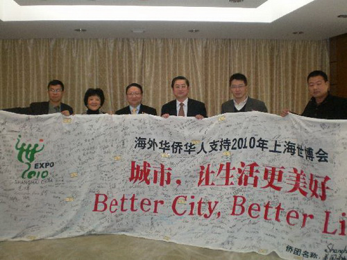 蘇彥韜向崔明華介紹了該會(huì)和他所任總裁的鷹龍傳媒集團(tuán)在近年大力宣傳上海世博會(huì)的情況。據(jù)悉,該會(huì)前后共舉辦了7次世博旗簽名活動(dòng),每次都吸引了成千上萬(wàn)人參加,有力地提高了上海世博會(huì)在洛杉磯地區(qū)的影響。周琴介紹說(shuō),有位行動(dòng)不便的僑胞興奮地在簽名旗上寫下了自己的姓名,并欣慰地說(shuō):“我去不了,就讓我的名字去吧!”。