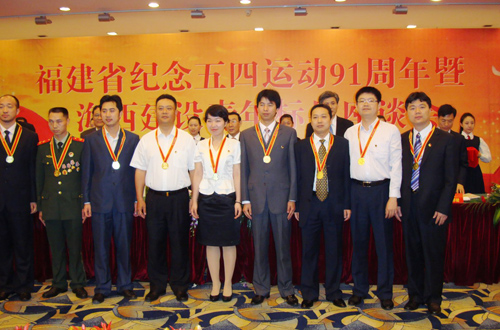 中新網5月6日電 據思明區僑聯消息,5月4日上午,在福建省紀念五四運動91周年暨海西建設青年標兵座談會上,福建省廈門市思明區僑聯青委會會長、廈門鷺達眼鏡有限公司董事長、高級經濟師張和輝榮獲由中共福建省委組織部、福建省公務員局(福建省人力資源開發辦公室)、共青團福建省委聯合頒發的第七屆“福建青年五四獎章”。