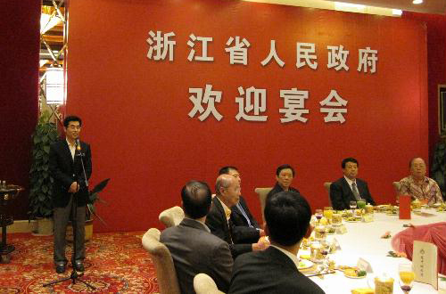 中新網(wǎng)5月18日電 據(jù)浙江僑網(wǎng)消息,5月13日晚,浙江省政府在花中城友誼廳舉行宴會(huì),熱烈歡迎參加第五屆世界華僑華人社團(tuán)聯(lián)誼大會(huì)的80余位海外華僑華人社團(tuán)負(fù)責(zé)人。浙江省副省長(zhǎng)龔正,省政府副秘書長(zhǎng)夏海偉,國(guó)僑辦文化司副司長(zhǎng)周虹出席宴會(huì)。