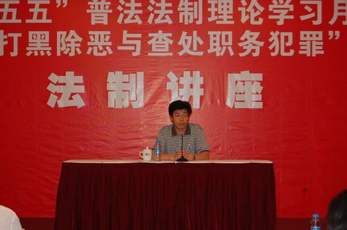 中新網6月24日 據重慶市外僑辦消息,6月18日上午,重慶市外僑辦舉行了“打黑除惡與查處職務犯罪”專題講座。此次講座是根據重慶市委宣傳部、市委法制建設領導小組辦公室、市司法局有關“五五”普法工作的要求和《市外僑辦2010年法制建設工作安排計劃》,落實外僑辦法制理論學習月具體措施的專項活動之一。