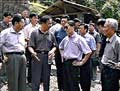 由中國國家經貿委主任李榮融率領的中央調查組,日前前往廣西壯族自治區南丹縣,調查當地礦井重大透水事故。圖中左三戴墨鏡者為李榮融。