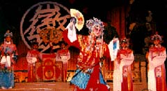 京劇的前身--徽劇 徽劇,淵源于明代的"徽池雅調"。明朝嘉靖年間,江西弋陽腔流傳到安徽青陽,貴池一帶,與當地民眾喜聞樂見的民間曲調相結合,創造了新腔,形成了具有當地地方特色的青陽腔;青陽腔又受到民間山歌小調和昆曲的影響,長期發展而形成今天的徽劇。 清朝乾隆年間,徽劇名藝人高朗亭,郝天壽等,把徽劇帶到揚州演出。當時揚州是全國文化中心之一,是"花部"的集中地,但很快即被藝術精湛的徽劇壓倒。乾隆五十五年,高朗亭又帶到了北京,受到了北京觀眾的歡迎。接著,又引起"四喜","春臺","和春"等徽班進京。 徽劇進京不久,漢劇也進京,徽劇又從漢劇中吸收了西皮,進一步豐富,發展了自己的聲腔。從此,徽劇不僅闖進了皇宮,振動了京城,而且廣泛流傳,影響了全國.它在北方扎下根子,逐漸吸收了北方的京腔,其高腔與北方語言結合起來,發展成為京劇。它在南方的戲曲影響也十分深遠,江西的贛劇、四川的川劇、廣東的粵劇、廣西的桂劇、云南的滇劇,都受到徽劇不同程度的影響。 對徽劇表演藝術有著突出貢獻的杰出代表是老藝人程長庚。程長庚名椿,字玉珊,安徽潛山人。他把徽音、京音、楚音兼收并用,脫俗創新,卓然成家,對徽劇來說,他起了承前作用,對京戲來說,他起了起后作用,因此,他成為京劇的開山祖師。 徽劇的表演藝術,豐富而多采。它講究平臺與高臺武功,講究身段、亮相的雕塑美,講究人物形象的塑造和畫面氣派等。平臺與高臺武功在徽劇里最為突出,平臺如"獨腳單踢"、"叉腿單踢"、"刀門"、"飛叉"等都異常驚險,至于高臺武工,更為險要,一般演員要翻三張桌子,有的要翻七張桌子。身段、亮相,在徽戲里很有雕塑藝術感。徽劇注重集體表演,必要時眾歌齊舞,顯得氣勢壯偉,場面熱烈。徽劇的劇目很多,據記載有一千四百零四個,因年代較久,多為手抄本,不少的本子以失傳。解放后,經過挖掘整理,富有徽劇特色的代表劇目有:《義虎報》、《巧姻緣》、《齊王點馬》、《水淹七軍》等。